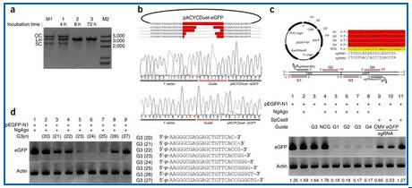 韩春雨的回复:Fig4,也是几乎惟一算是有难度的,就是控制转染时的细胞密度和用血清控制细胞生长,时间稍长,毕竟NgAgo未经过系统的密码子优化——照着online method上protocol for genome editing and T7E1做(小经验,PCR最好不要有引物二聚体,如果引物二聚体多请重设引物;PCR产物直接回收最好不跑胶回收,可能跟ago切24bp有关,设好对照!)银染分辨率高,可以排除T7E1假阳性,能做出预期条带后请用PCR产物去测序。欢迎大家广泛使用此系统,并分享成功经验和失败教训。附,addgen上的质粒,可以直接用作基因组编辑。再次强调,不加NgAgo,就能抑制GFP,是假阳性,是细胞出问题了(谢天谢地不但我自己而且审稿人也有这个对照)出现假阳性的细胞切基因组就没戏了。对于Fig4,若是不习惯做银染,也可以直接做KI:doner 用GFPcoden+polyA signal,前后加几个保护性的碱基——从GFP-N1扩出来连到T-vector上,再从此doner-Tvector上扩(防止GFP-N1污染的假阳性)出来纯化,500-800ng共转(for each well of 24 well plate)。