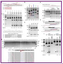 图片4中,设计了针对人DYRK1A基因的gDNAs,以及另外的八个不同基因的47条guides,效果均不错,作者还在乳腺癌细胞系MCF-7、人骨髓细胞系K562和HeLa细胞系在内的多种哺乳动物细胞系中测试了NgAgo-gDNA系统,结果发现在所有这些细胞系中,NgAgo都能够高效地诱导DYRK1A基因靶位点发生双链断裂,证明了其广泛的基因组靶向范围。