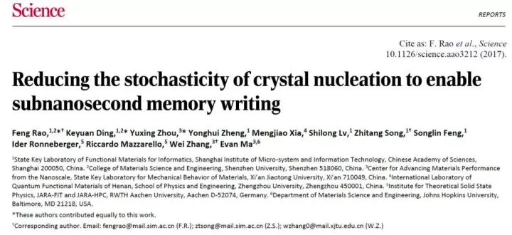 5、《Science》西安交大等:重要发现,突破相变存储速度极限!