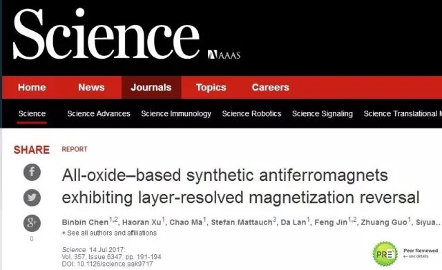 8、《Science》中国科大等:重大突破首次制备出全氧化物人工反铁磁体