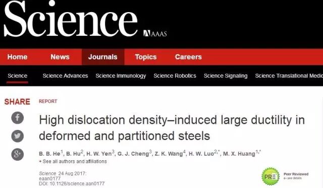 2、《Science》北科大等合作研制出:屈服强度2.2GPa的超级钢!