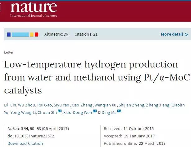 4、《Nature》北大:重大突破!制备氢燃料新过程,150℃便可获得极高产氢效率